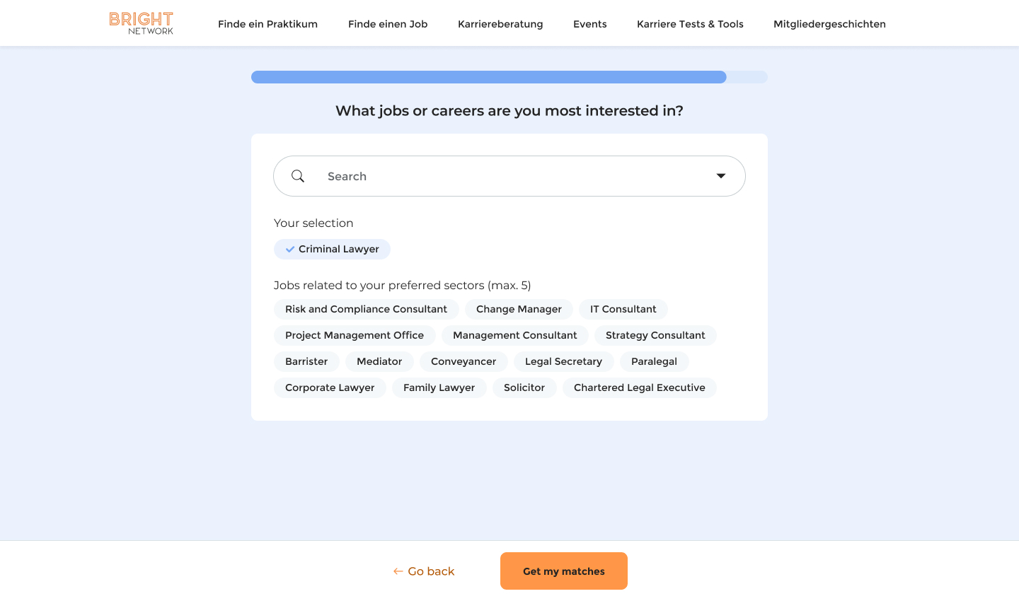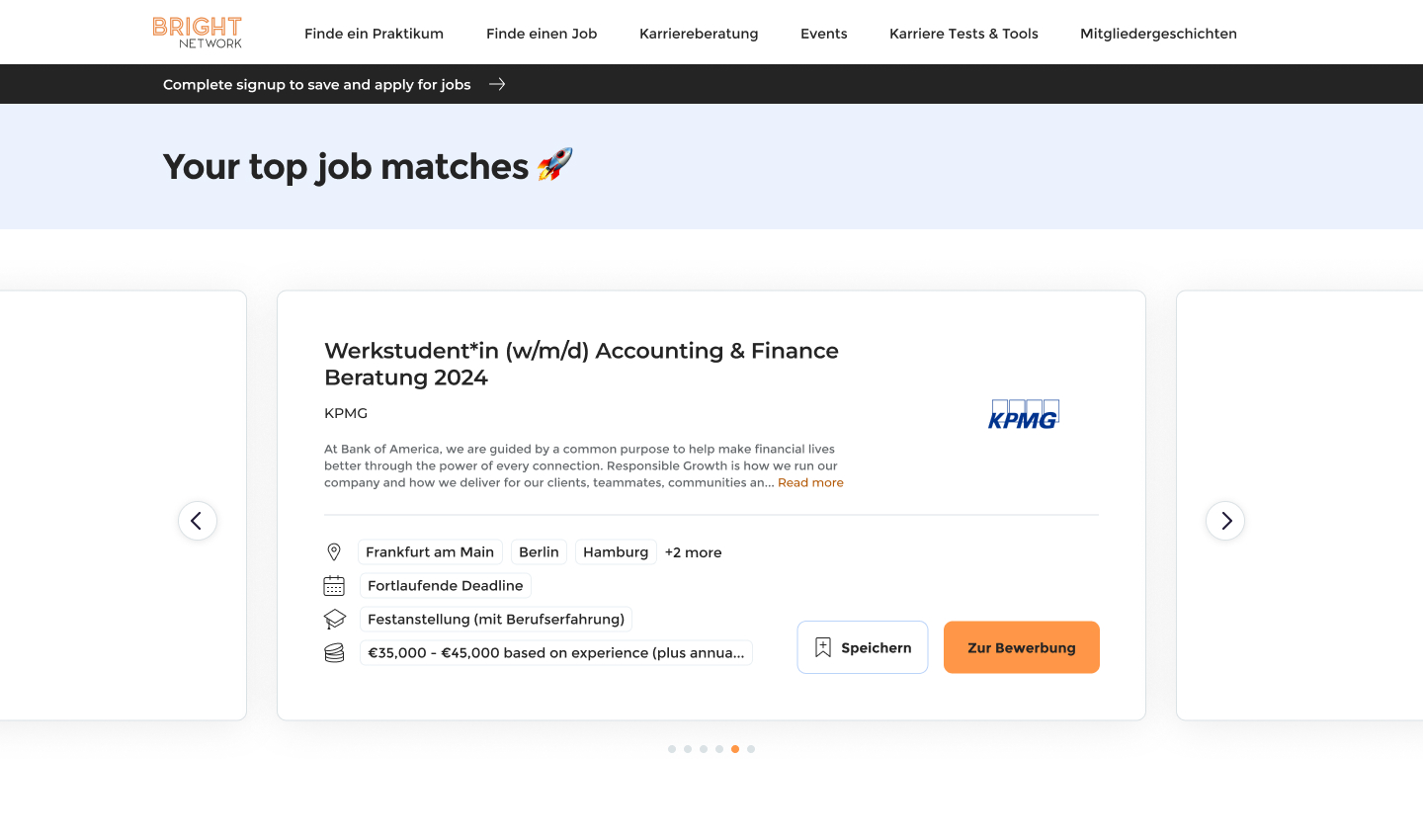 We conducted usability testing with six German students and recent graduates. During the first half of each session, I focused on validating job match quality using the live Bright Network website. For each session: