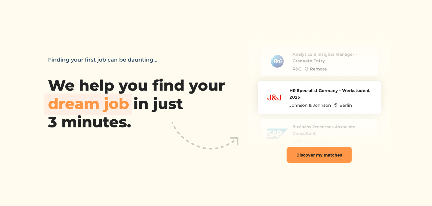 These findings suggested a fundamentally different mindset. With less financial pressure and earlier access to relevant work experience, German graduates appeared to have greater freedom in their career decision-making. Rather than urgently applying for any available role, they were more focused on finding positions that aligned with their long-term goals, prioritising quality, relevance, and fit over speed. They were also happy with the current job platforms, so we needed to offer something unique in order to win this audience.